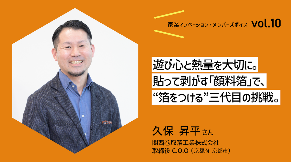 【家業イノベーション・メンバーズボイス vol.10 久保 昇平さん】遊び心と熱量を大切に。貼って剥がす「顔料箔」で、“箔をつける”三代目の挑戦。