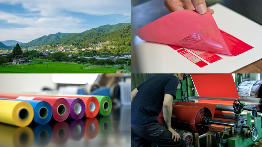 私たちは1952年創業の顔料箔メーカーで、金糸の材料をルーツに「転写顔料箔」という素材をつくり続けてきました。箔というと、チョコレートの箱や雑誌の表紙に使われる金や銀のキラキラした表現を思い浮かべる方が多いと思いますが、私たちの特徴は“色を表現できる箔”をつくっていることです。白や黒、ブランドのコーポレートカラーなど、微妙な色味や深みを、数グラム単位の調色と1/1000ミリ単位のコーティング精度で再現していく。感覚としては料理に近くて、基本レシピはあっても、最後は職人の目と感覚で仕上げていく世界です。