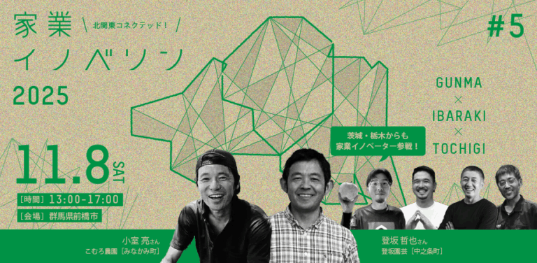 🌾 家業の未来に、挑戦の火を灯せ。 『北関東コネクテッド!家業イノベソン2025』次なる舞台は群馬! 茨城・栃木・群馬の“家業イノベーター”と多様な参加者が集まり、地域を支える家業のリアルな課題に向き合い、共に考え、アク […] -